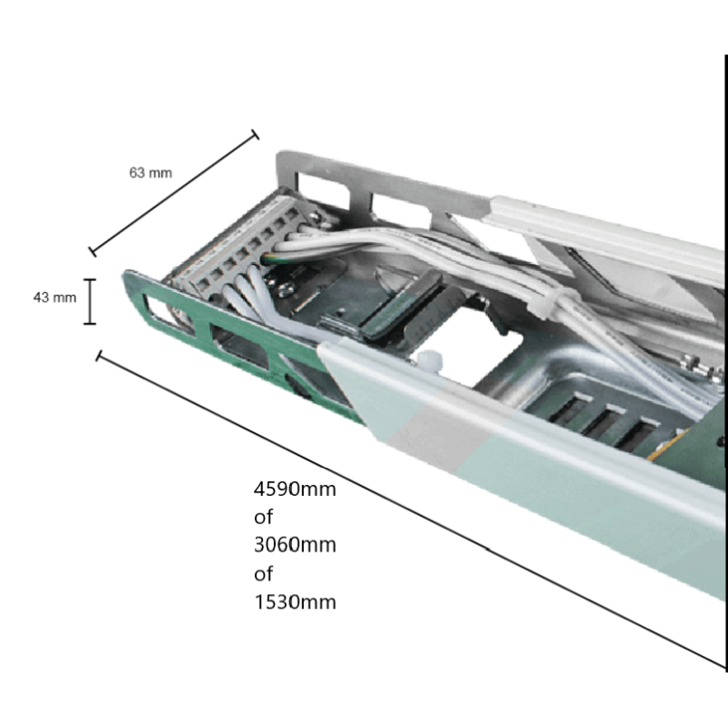 De draagrail van de lichtlijn is gemaakt van hoogwaardig staal en voorzien van een 8-aderige bedrading van 2,5 mm², die zorgt voor een veilige en efficiënte stroomverdeling