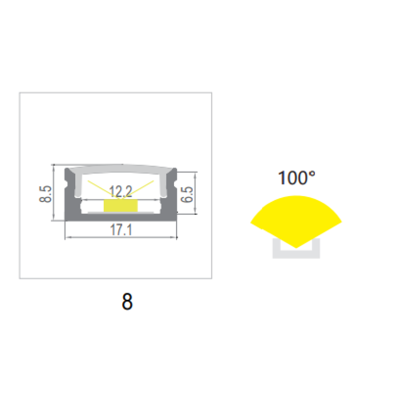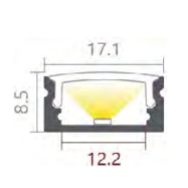 LED PROFIEL MODEL 8 ZWART 8MM 2,5MTR COVER ZWART