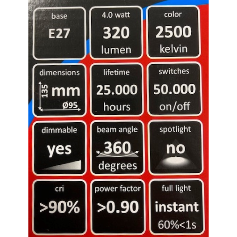 1127 LED LAMP E27 320LM 4,0W 2500K 230V HELDER DIM